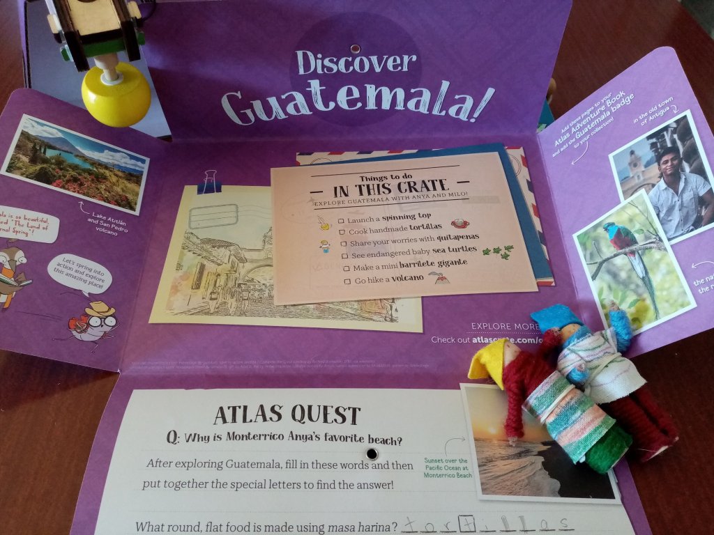 Each Atlas Crate comes with a special airmail envelope from Anya the Cricket and Milo the Sandpiper revealing where they’ve been on their latest adventure. There is a special passport sticker for your child’s Atlas Adventure Book plus seven new pages to add about a new country (highlighting geography, customs, landmarks, history, and foods).